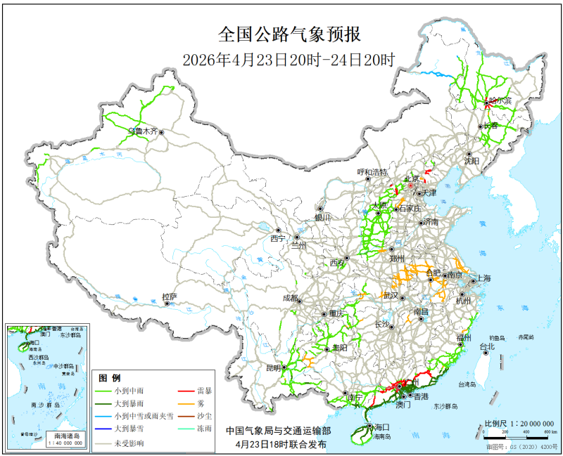 中国气象局与交通运输部2026年4月23日联合发布全国主要公路气象预报