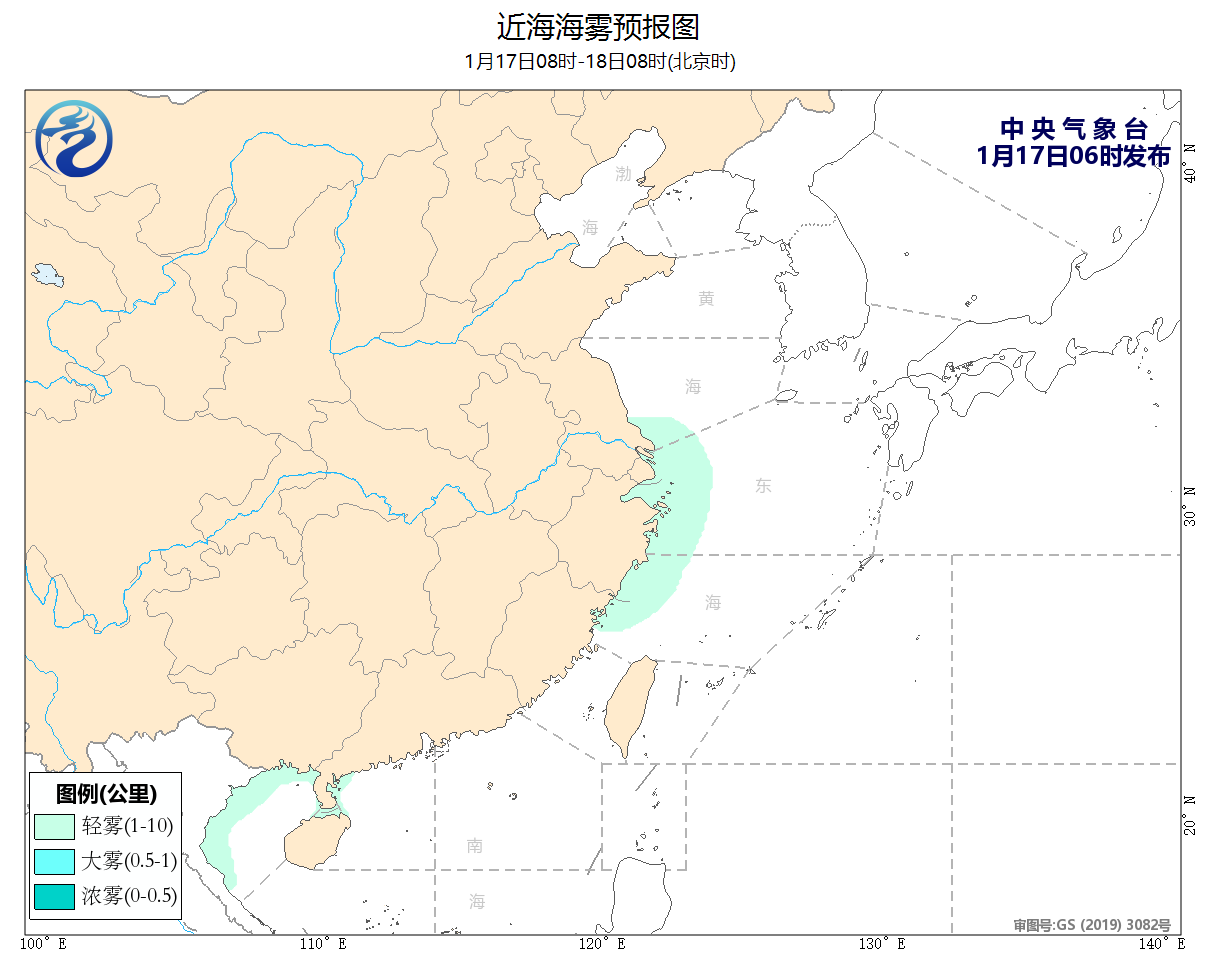 17日08时至18日08时,台湾海峡、巴士海峡将有5~7级、阵风8级的东北风,黄海大部海域、东海大部海域、南海东北部和中东部海域将有4~6级、阵风7级的偏北到东北风,渤海将有5~6级、阵风7级的偏东到东北风。黄海南部海域、东海西部海域、北部湾、琼州海峡、雷州半岛沿岸海域将有轻雾,能见度不足10公里。