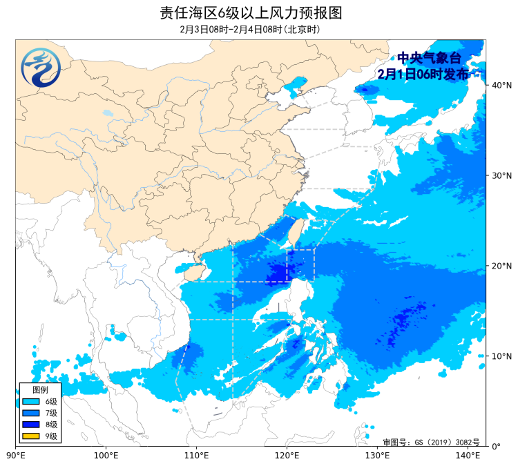 3日08时至4日08时,南海东北部海域将有6~8级、阵风9级的东北风,台湾海峡、台湾以东洋面、巴士海峡、南海中东部和西南部海域将有5~7级、阵风8级的东北风,渤海将有5~6级、阵风7级的西南风,东海南部海域、琼州海峡、南海西北部、中西部和南海东南部海域将有4~6级、阵风7级的偏东到东北风。