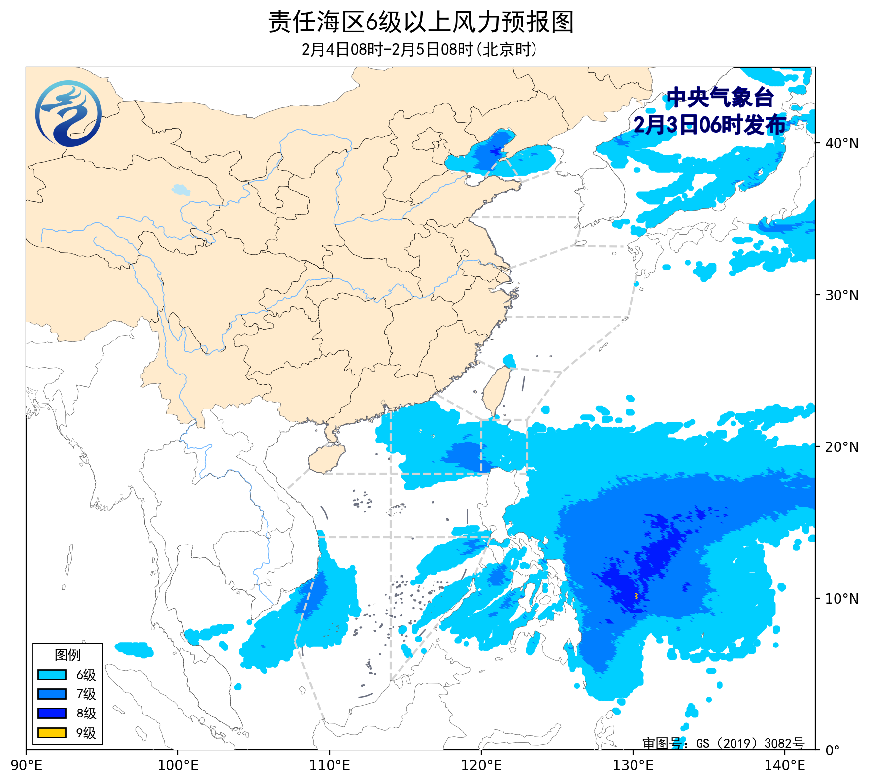 3日08时至4日08时,巴士海峡、南海东北部海域将有6~8级、阵风9级的东北风,台湾海峡、台湾以东洋面、南海中东部和西南部海域将有5~7级、阵风8级的东北风,渤海将有4~6级、阵风7级的西南风,东海南部海域、南海中西部和东南部海域将有4~6级、阵风7级的偏北到东北风,南海西北部海域将有5~6级、阵风7级的东北风到偏东风。