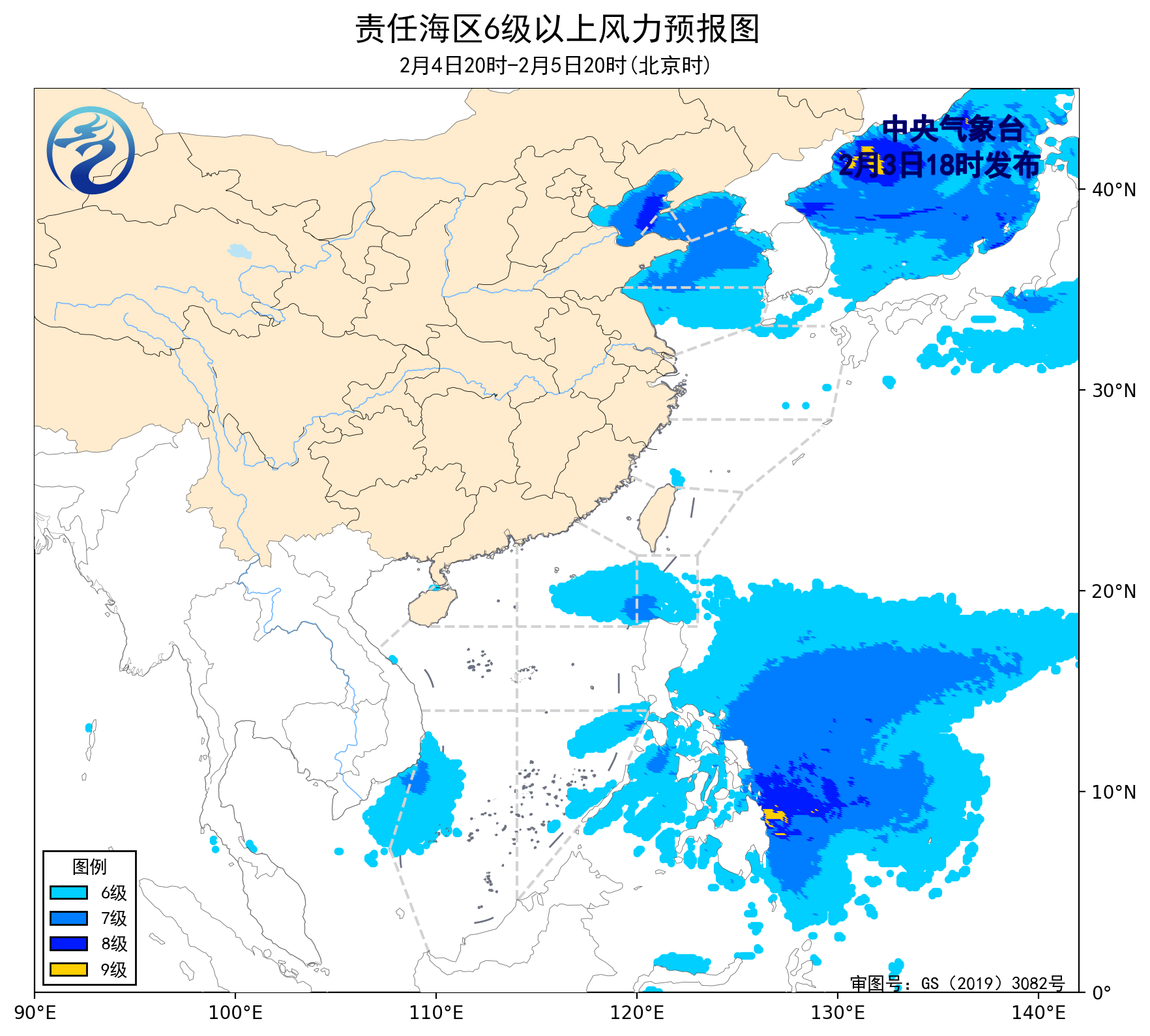 4日20时至5日20时,渤海将有6~8级、阵风9级的偏北风,黄海中部海域将有4级以下的西南风增大到6~7级、阵风8级的偏北风,渤海海峡、黄海北部海域将有5~7级、阵风8级的偏北到西北风,黄海南部海域将有4级以下的西南风增大到5~6级、阵风7级的东北风,巴士海峡、南海东北部和南部海域将有4~6级、阵风7级的偏东到东北风。
