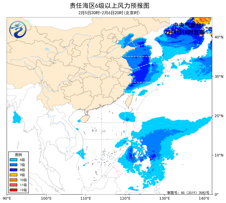 2月4日02时至14时,巴士海峡、南海东北部海域出现了5~7级、阵风8级的偏东风,南海西南部海域出现了5~6级、阵风7级的偏北风。