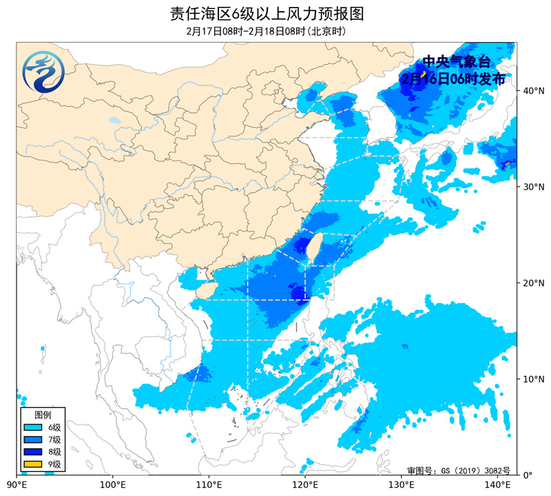 16日08时至17日08时,台湾海峡将有6~8级、阵风9级的东北风,台湾以东洋面将有4级以下的偏东风增大到6~7级、阵风8级的偏北风,黄海中部和南部海域、东海大部海域、南海东北部海域将有5~7级、阵风8级的偏北到东北风,黄海北部海域将有4~6级、阵风7级的偏北到西北风,南海中东部海域将有4级以下增大到5~6级、阵风7级的东北风,巴士海峡、南海西北部海域将有4~6级、阵风7级的偏东到东北风。北部湾、琼州海峡、南海西北部海域将有大雾,能见度不足1公里。