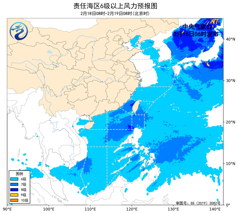 18日08时至19日08时,台湾海峡、台湾以东洋面、巴士海峡、南海东北部和中东部海域将有6~7级、阵风8级的东北风,黄海北部海域将有5~6级、阵风7级的偏北风减弱到4级以下的偏南风,黄海中部海域、东海大部海域将有4~6级、阵风7级的偏北到西北风,南海西部和东南部海域将有5~6级、阵风7级的东北风,琼州海峡将有4~6级、阵风7级的偏东风。