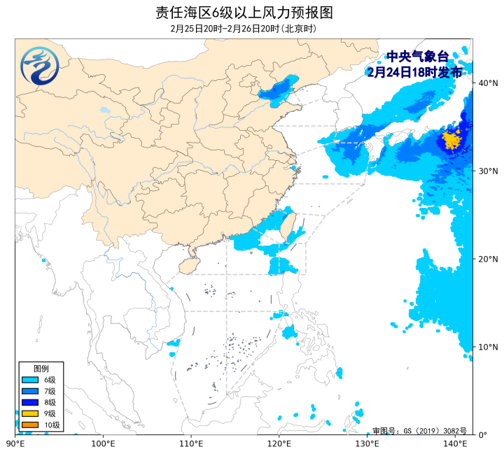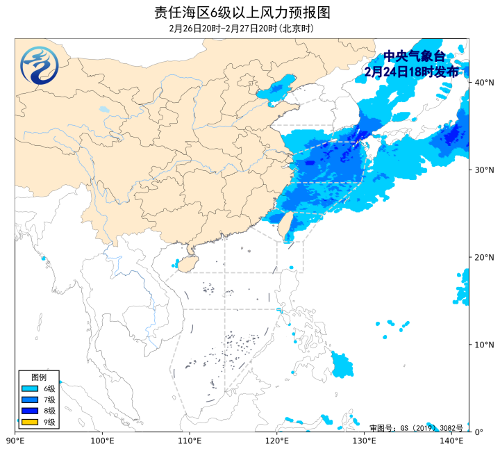 预计,2月27日夜间至3月1日白天,渤海、渤海海峡、黄海中部和南部海域、东海大部海域、台湾海峡、巴士海峡、南海北部海域、北部湾将有6~7级、阵风8级的风。3月1日夜间至3日白天,黄海南部海域、东海大部海域将有6~7级、阵风8级的风,其中黄海南部海域、东海北部的部分海域风力可达8~9级、阵风10级。