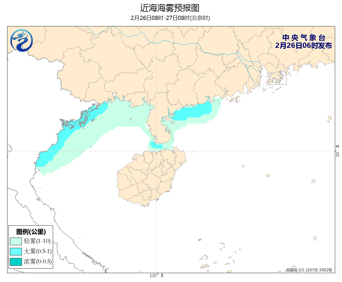 26日08时至27日08时,渤海将有5~7级、阵风8级的东北风,东海南部海域将有4~6级、阵风7级的偏北转偏南风,巴士海峡将有4~6级、阵风7级的偏东风。另外,北部湾、琼州海峡、广东西部沿岸海域有轻雾,短时有大雾。