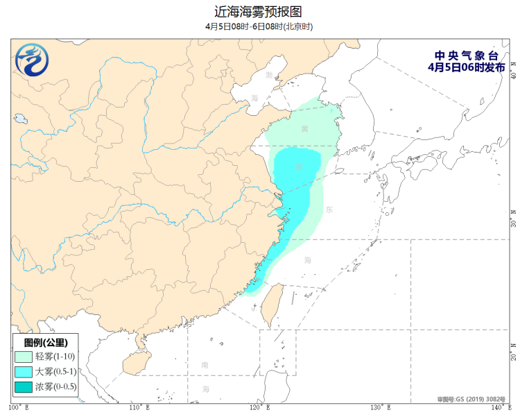5日08时至6日08时,黄海南部海域、东海西部海域、长江口附近海域、杭州湾、浙江沿海、福建沿海将有能见度不足1公里的大雾;黄海北部和中部海域、台湾海峡、北部湾、南海西北部和中西部海域将有5~6级、阵风7级的偏南风。
