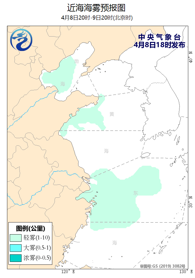 8日20时至9日20时,东海南部海域将有6~7级、阵风8级的西南风,黄海中部和南部海域、东海北部海域将有6~7级、阵风8级的偏南到东南风,黄海北部海域将有5~6级、阵风7级的偏东风,台湾海峡、台湾以东洋面、北部湾、南海西北部和中西部海域将有5~6级、阵风7级的偏南到西南风。渤海中西部、黄海中西部海域、成山头、山东半岛沿岸、长江口、东海北部将有能见度不足10km轻雾。