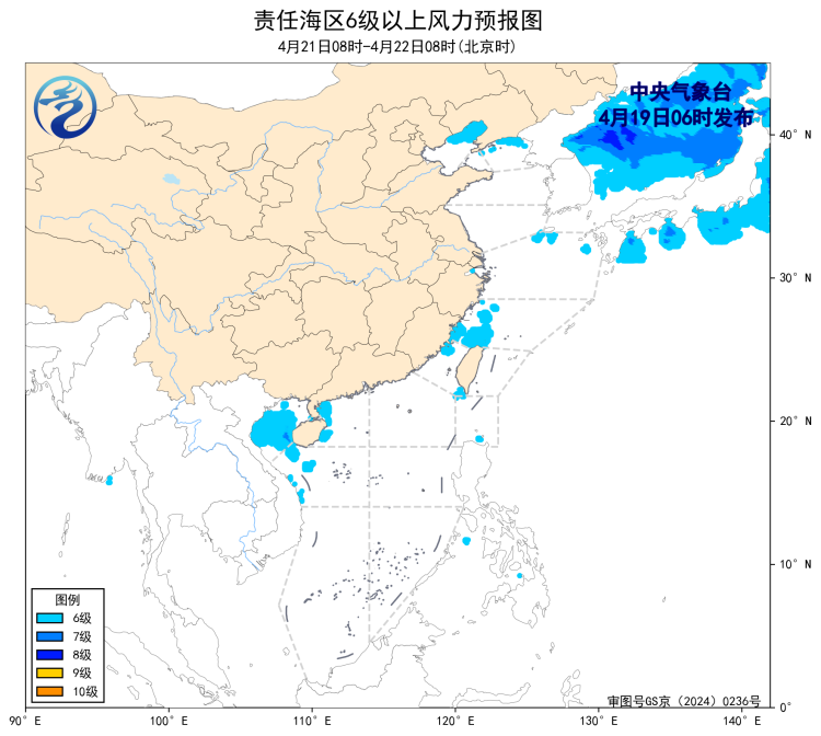 21日08时至22日08时,渤海将有5~6级、阵风7级的西南风,北部湾将有5~6级、阵风7级的东南风。