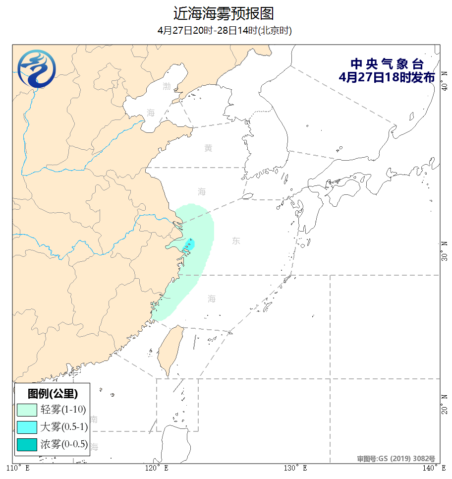 27日20时至28日20时,舟山群岛附近海域将有能见度不足1公里的大雾,江苏南部沿岸海域、长江口及杭州湾附近海域、浙江沿岸海域、福建北部沿岸海域将有能见度不足10公里的轻雾;黄海北部海域将有5~6级、阵风7级的偏北风。