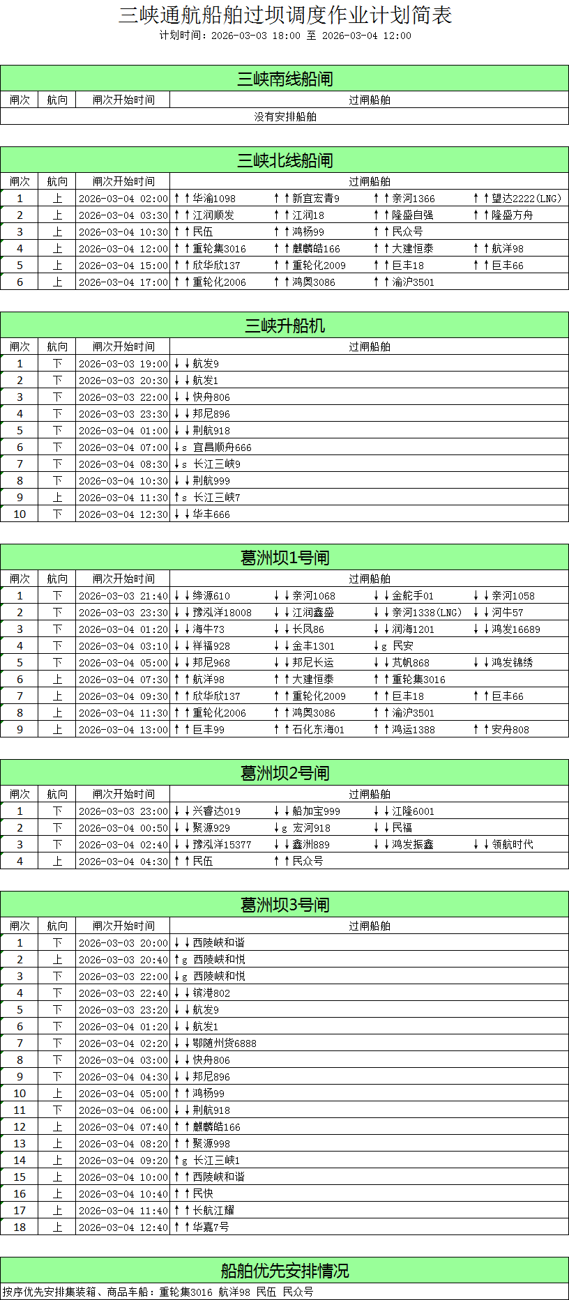 2026-03-03 14:00三峡-葛洲坝船舶过坝计划