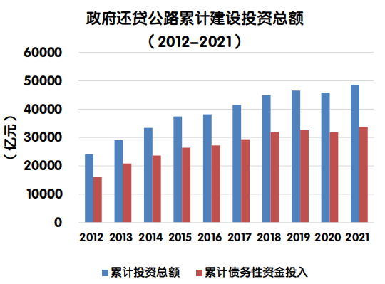 (注:累计建设投资总额指历年和当年收费公路建设投资额的合计)