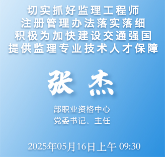各位网友,大家好!欢迎关注交通运输部网站在线访谈。本期访谈,我们邀请到了交通运输部职业资格中心党委书记、主任张杰同志,请他为我们介绍《交通运输工程监理工程师注册管理办法》(交通运输部令2024年第3号)(以下简称《部3号令》)实施一年来,中心全面抓好贯彻落实,为加快建设交通强国提供监理专业技术人才保障的有关情况。欢迎张主任!