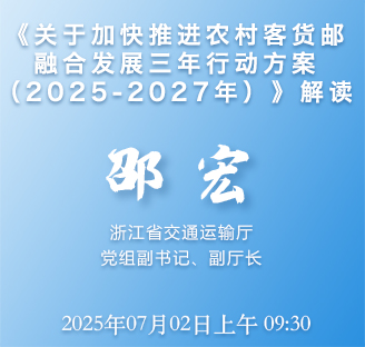 各位网友大家好!欢迎关注交通运输部政府网站在线访谈。近日,浙江印发了《关于加快推进农村客货邮融合发展三年行动方案(2025-2027年)》(以下简称《行动方案》),本期访谈,我们邀请浙江省交通运输厅党组副书记、副厅长邵宏,为广大网友解读《行动方案》。欢迎您!