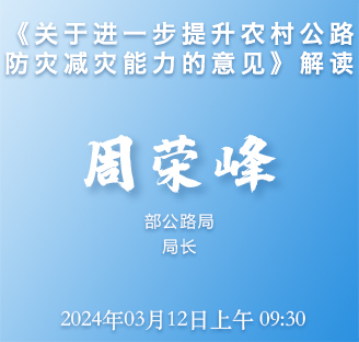 各位网友大家好,欢迎关注交通运输部政府网站在线访谈栏目。近日,交通运输部印发了《关于进一步提升农村公路防灾减灾能力的意见》,本期访谈,我们邀请到交通运输部公路局周荣峰局长,就文件相关内容进行解读。欢迎您!