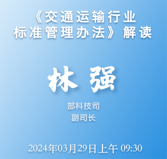 大家好,《交通运输行业标准管理办法》(以下简称《管理办法》)于3月1日起正式实施,本期访谈我们邀请到交通运输部科技司林强副司长与大家交流《管理办法》的制定和实施的相关工作。欢迎您,林副司长!
