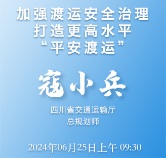 各位网友,大家好,欢迎关注本期在线访谈。2023年8月,交通运输部办公厅印发《关于进一步加强渡运安全治理打造更高水平“平安渡运”的通知》,四川是交通运输部确定的“六区一线”水上交通安全监管重点省份,2022年四川就已启动实施“平安渡运”工程,是“平安渡运”工程的先行实践地。今天,我们很荣幸邀请到四川省交通运输厅总规划师寇小兵,请他为大家介绍四川省“平安渡运”工程的建设成果和经验。寇总规划师,欢迎您!