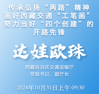 今年是习近平总书记就川藏、青藏公路建成通车60周年作出重要批示十周年暨“两路”通车70周年,今天,我们邀请到西藏自治区交通运输厅党组书记、副厅长达娃欧珠同志,与我们共同回顾川藏、青藏公路建成通车、10多万汉藏筑路先辈缔造“两路”精神的丰功伟绩,一起见证“两路”通车70年来西藏交通运输事业取得的辉煌成就,展望在新的历史起点上继续传承弘扬“两路”精神、推动实现雪域高原“人享其行,物畅其流”的美好愿景。欢迎您,达娃欧珠书记。