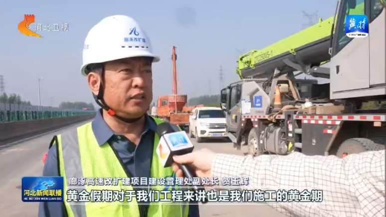 “黄金假期,对于我们工程来讲,也是我们施工的黄金期。没有酷暑,没有严寒,也不是雨季,我们全线的工人基本上都是三班倒。”廊涿高速改扩建项目建设管理处副处长贺玉辉说。