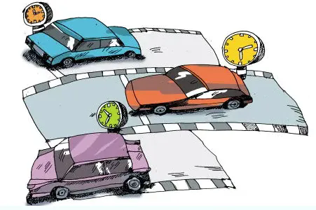遇车流量大时注意排队前进,切勿超车插队,切勿占用应急车道;