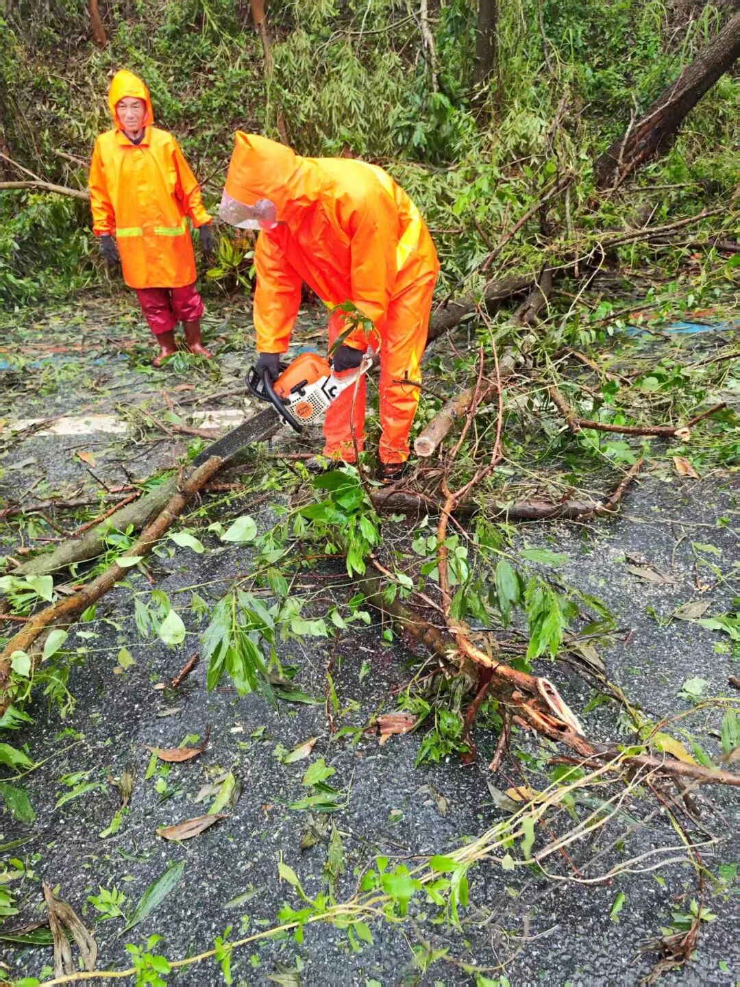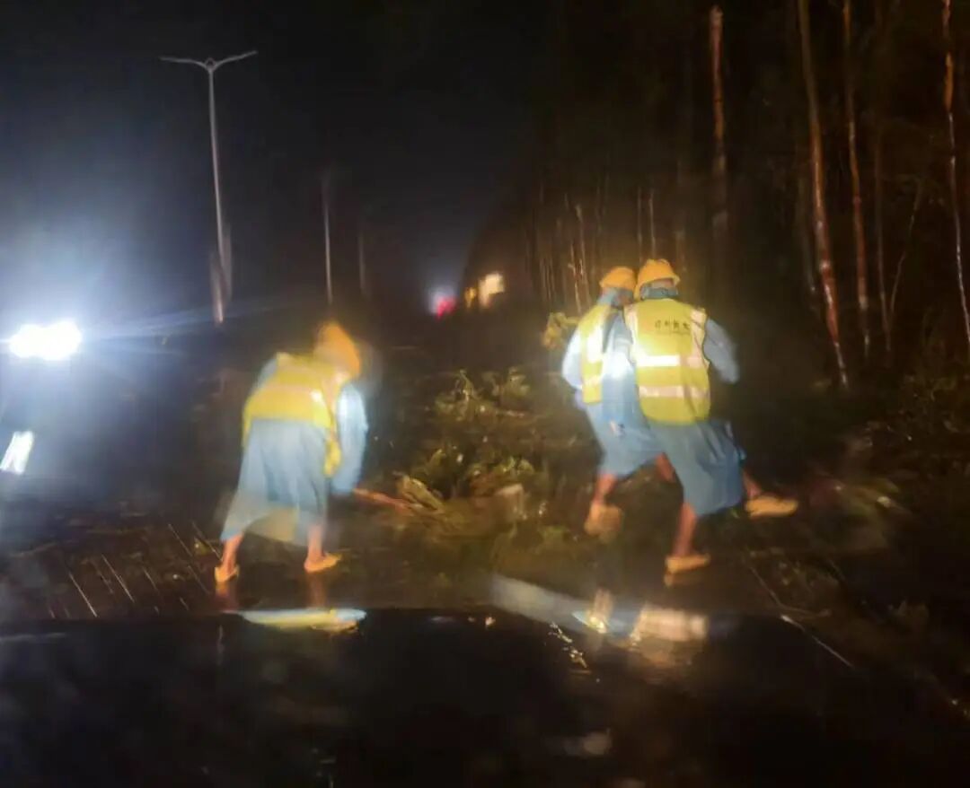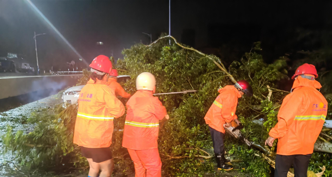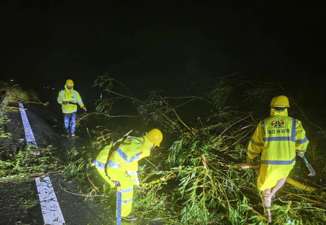 ▲渝湛、湛徐高速抢险队员清理倒伏树木。图源:广东交通集团