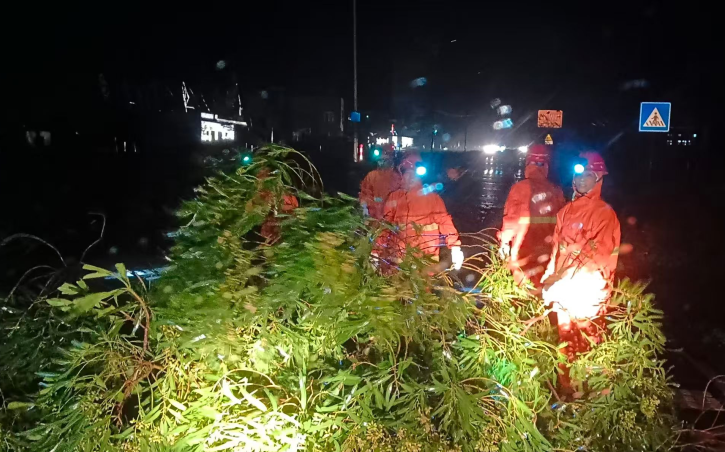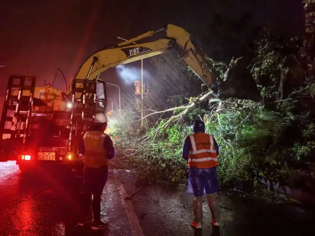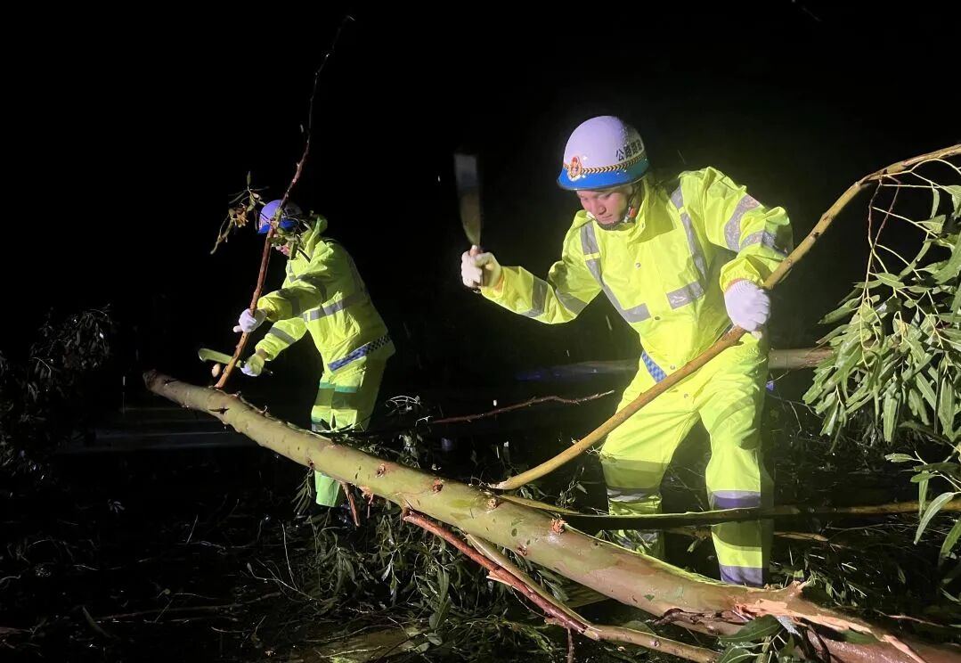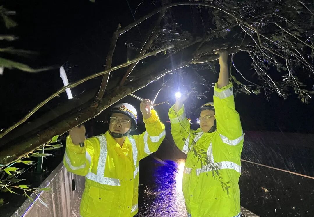 ▲渝湛、湛徐高速抢险队员清理倒伏树木。图源:广东交通集团