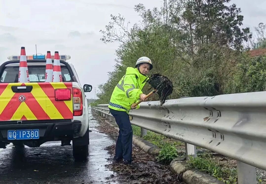 ▲阳茂高速员工清理路上淤泥。图源:广东交通集团