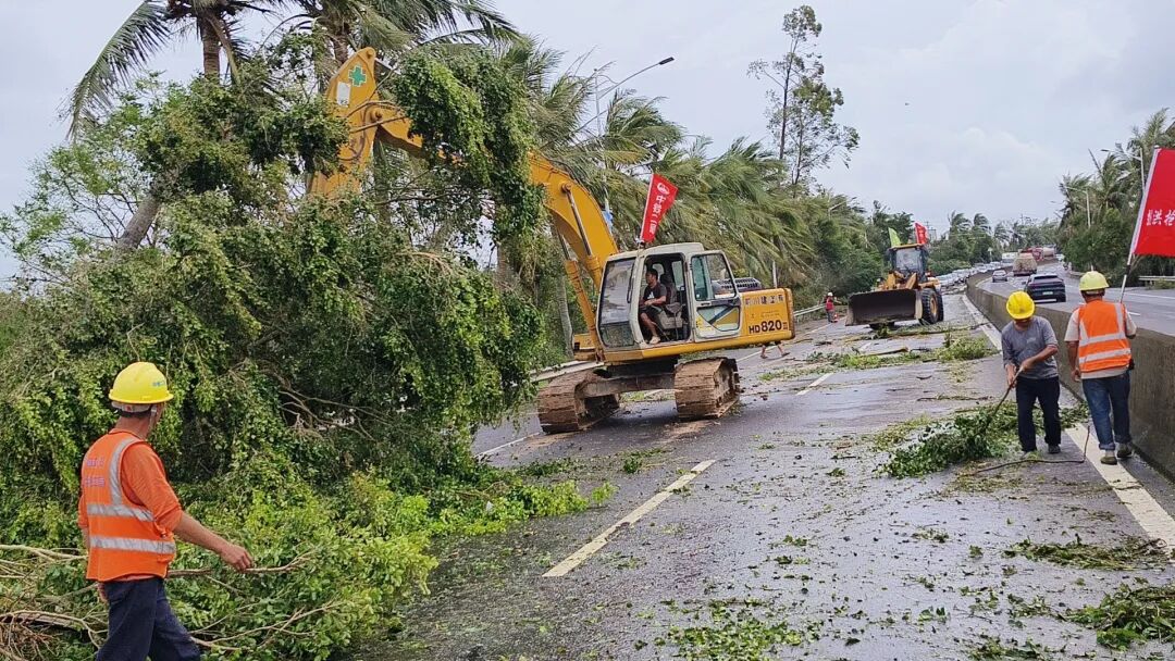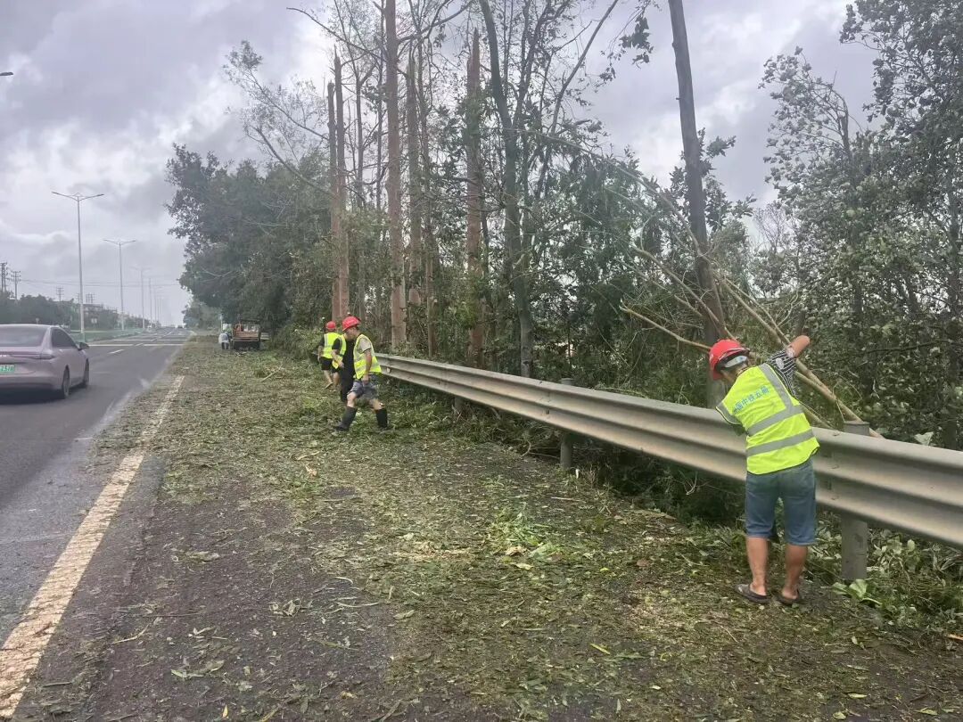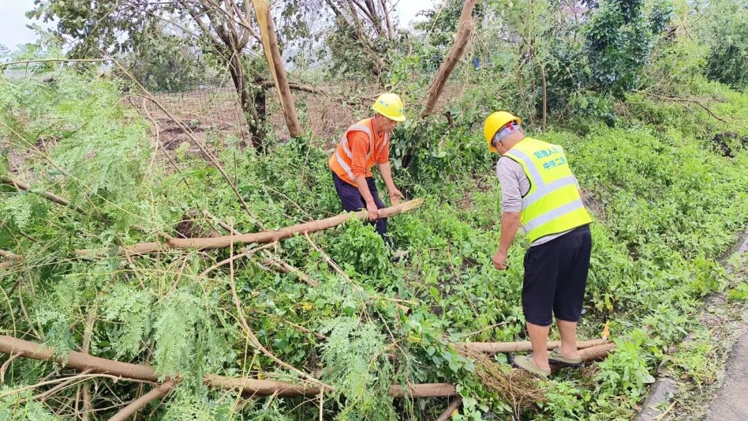 ▲湛江市徐闻县公路事务中心组织工作人员清理路障。图源:湛江交通