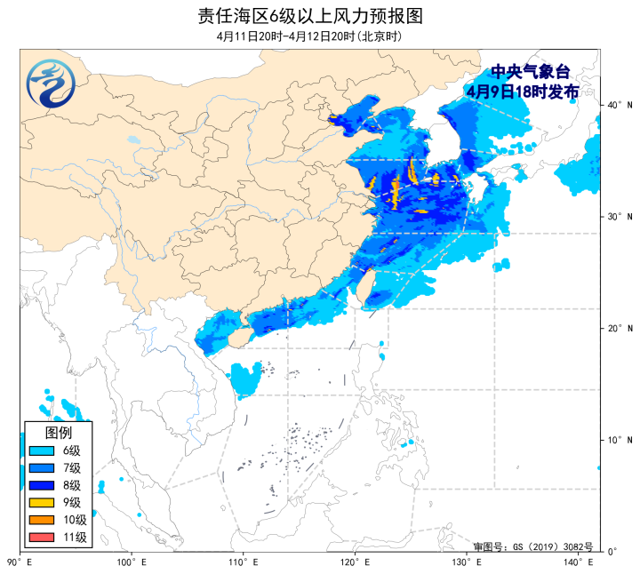 11日20时至12日20时,黄海南部海域将有6~7级、阵风8级增大到8~9级、阵风10级的东南风转西北风,渤海将有7~8级、阵风9级的偏西到西北风,渤海海峡将有6~8级、阵风9级的偏南转偏西风,东海北部海域将有6~8级、阵风9级的偏南风,东海南部海域将有5~6级、阵风7级增大到7~8级、阵风9级的偏南转偏北风,黄海中部海域将有5~7级、阵风8级的偏南转西北风,台湾以东洋面将有4~5级增大到6~7级、阵风8级的偏南风,北部湾、南海西北部海域将有5~7级、阵风8级的偏南转东北风,南海东北部海域将有4~5级增大到6~7级、阵风8级的偏南转偏北风,黄海北部海域、台湾海峡将有5~7级、阵风8级的偏南到西南风,琼州海峡将有4~6级、阵风7级的偏南转偏北风,南海中西部海域将有4~6级、阵风7级的偏南风。