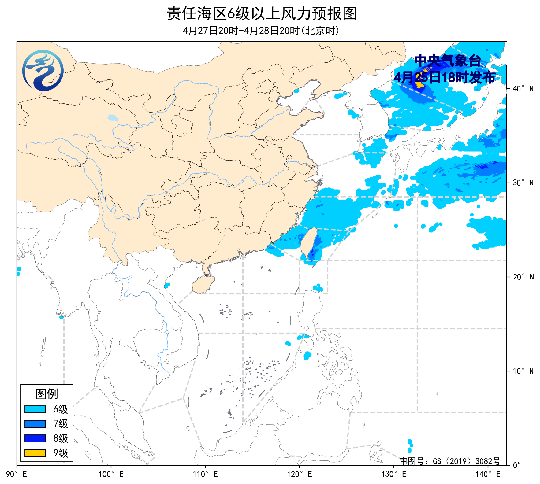 4月28日夜间到29日夜间,东海南部海域、台湾海峡、台湾以东洋面、巴士海峡、南海东北部海域将有5~6级、阵风7级的偏北到东北风,其中台湾海峡28日夜间风力可达6~7级、阵风8级;4月29日夜间至5月2日白天,渤海、渤海海峡、黄海大部海域、东海北部海域将有5~6级、阵风7级的偏南转偏北风。