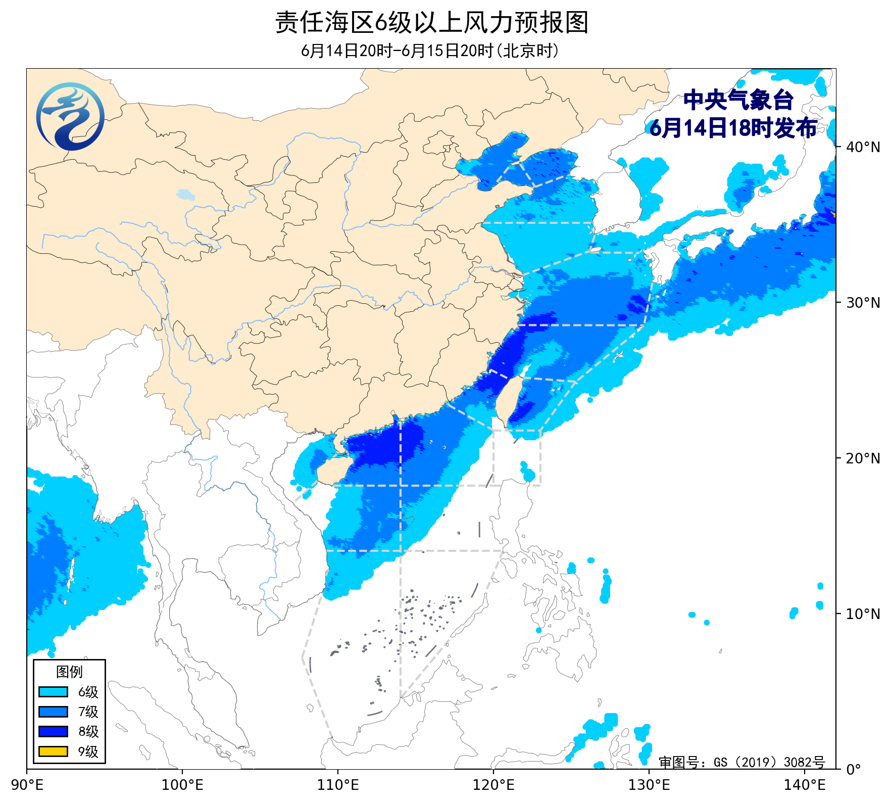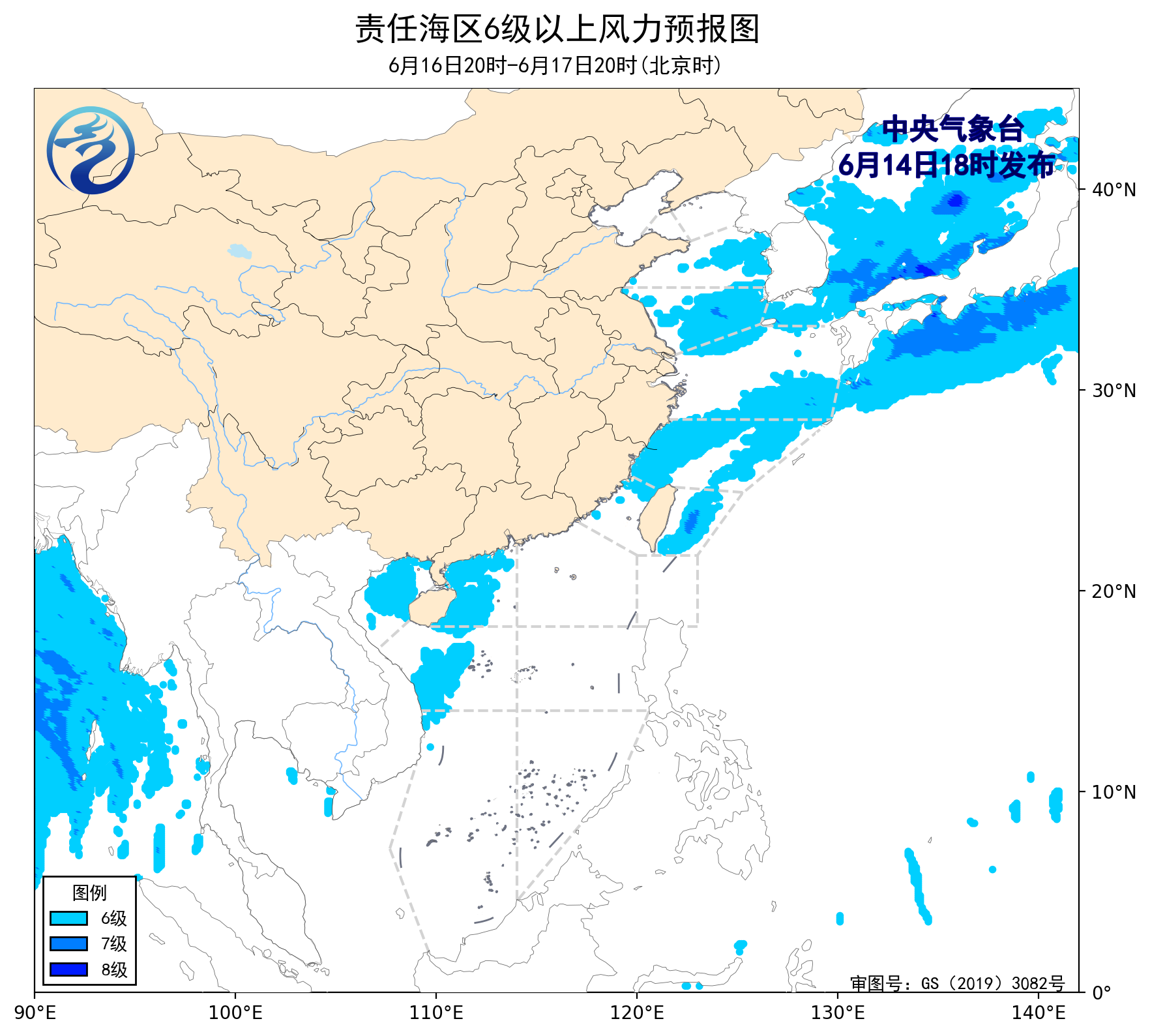 14日20时至15日20时,东海南部海域、台湾海峡、南海西北部海域将有6~8级、阵风9级的偏南到西南风,渤海海峡将有5~7级、阵风8级的偏南转偏西风,渤海、东海北部海域、台湾以东洋面、南海东北部海域将有5~7级、阵风8级的偏南到西南风,黄海北部和中部海域将有6~7级、阵风8级的偏南到东南风,琼州海峡将有5~6级、阵风7级的偏南风减弱到4级以下的偏西风,黄海南部海域、北部湾、南海中东部海域将有5~6级、阵风7级的偏南到西南风。