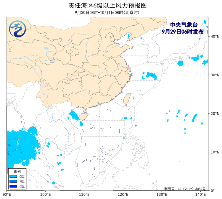29日08时至30日08时,北部湾将有6~8级、阵风9级的东南风,琼州海峡将有6~7级、阵风8级减弱到4~5级的东南风,南海中西部海域将有5~7级、阵风8级的东南风,南海西北部海域将有4~6级、阵风7级的东南风。