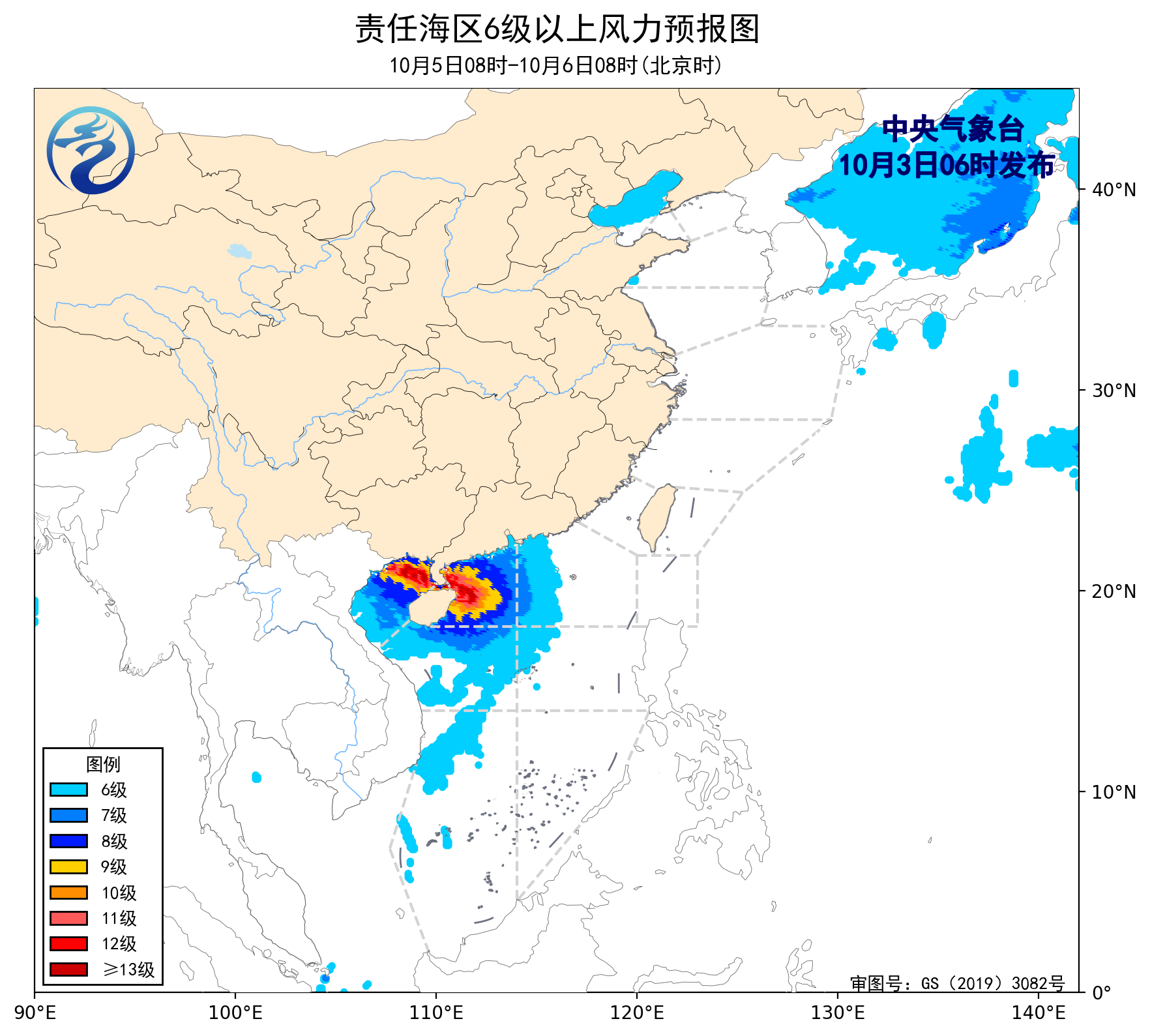 5日08时至6日08时,琼州海峡将有11~12级、阵风13级减弱到6~7级、阵风8级的偏南风,北部湾将有10~11级、阵风12级的偏北转西南风,南海西北部海域将有10~11级、阵风12级减弱到6~7级、阵风8级的东南风,渤海将有5~6级、阵风7级的东北风,南海东北部海域将有5~6级、阵风7级减弱到4级以下的东南风,南海中西部海域将有4~6级、阵风7级的西南风到偏南风。