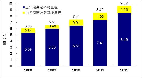 图5 2008-2012年全国高速公路里程