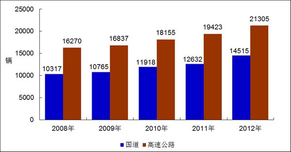 图7 2008-2012年国道、高速公路日平均交通量