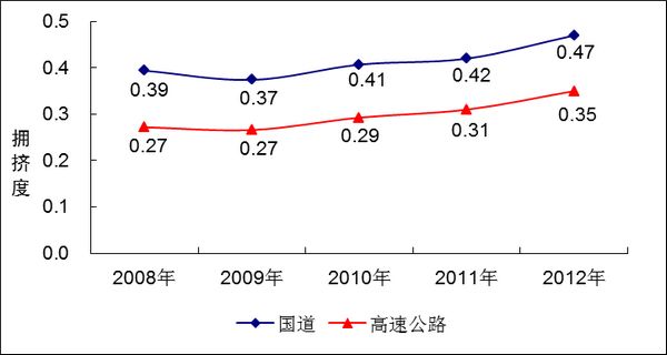图8 2008-2012年国道、高速公路年平均交通拥挤度