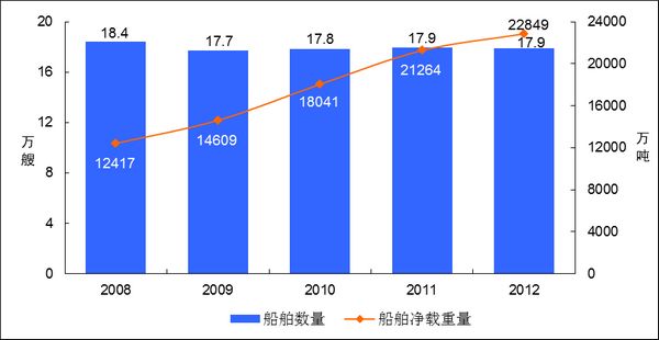 图9 2008-2012年全国水上运输船舶拥有量