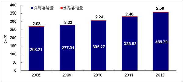 图10 2008-2012年全国公路、水路客运量