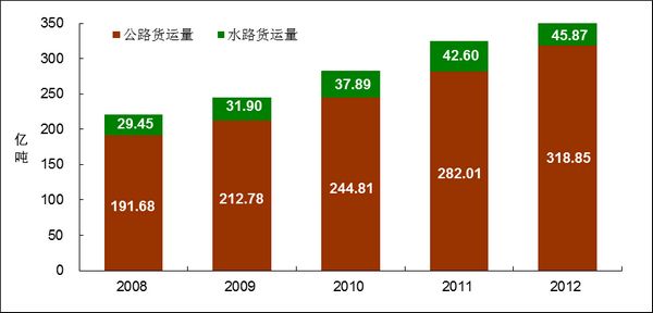 图11 2008-2012年全国公路、水路货运量