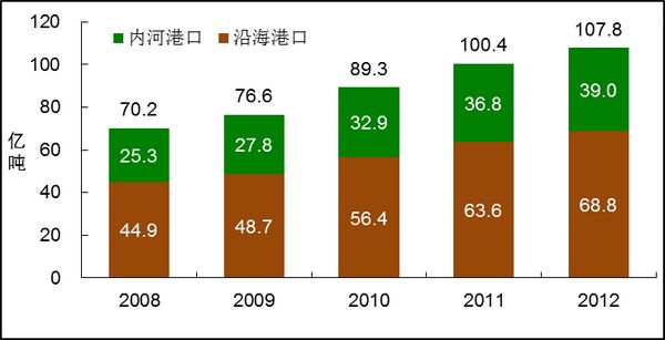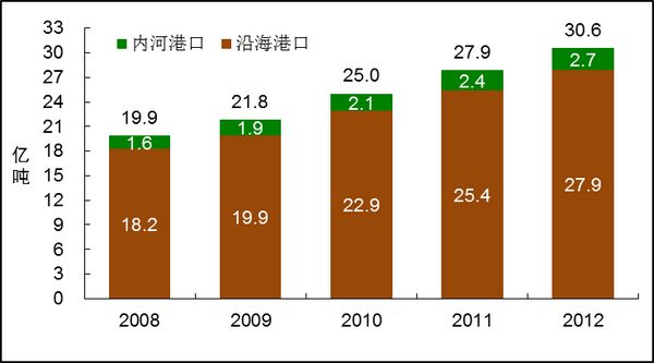 图12 2008-2012年全国港口货物吞吐量