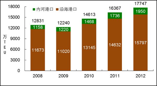 图15 2008-2012年全国港口集装箱吞吐量