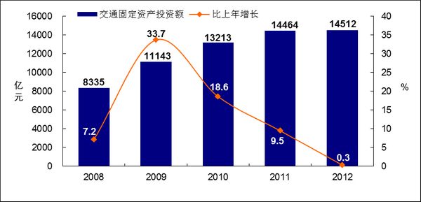 图18 2008-2012年交通固定资产投资额及增长速度