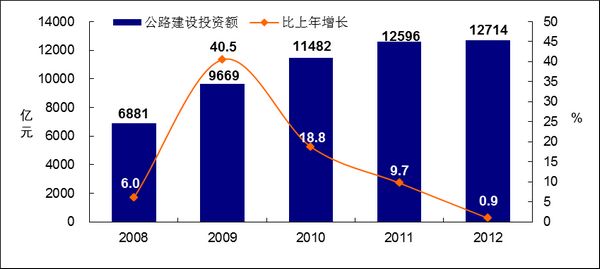 图19 2008-2012年公路建设投资额及增长速度