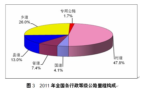 3.由于部分省份省道网调整,2011年全国省道和县道里程变化较大。