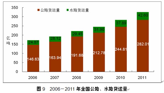 2011年底,全国拥有公路营运汽车1263.75万辆,比上年末增长11.5%。