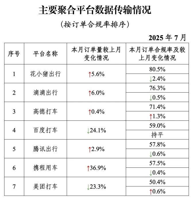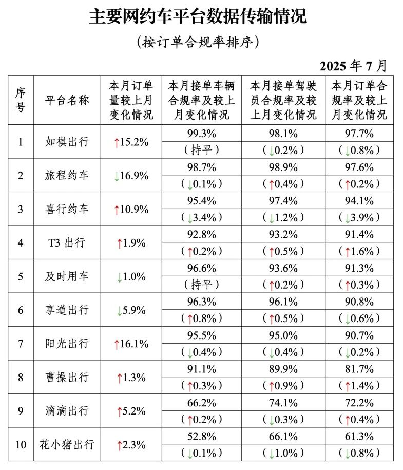其中,面向乘客、与网约车平台公司共同提供服务的平台(俗称“聚合平台”)完成2.73亿单,环比下降2%。按订单合规率由高到低的分别是花小猪出行、滴滴出行、高德打车、百度打车、腾讯出行、携程用车、美团打车。