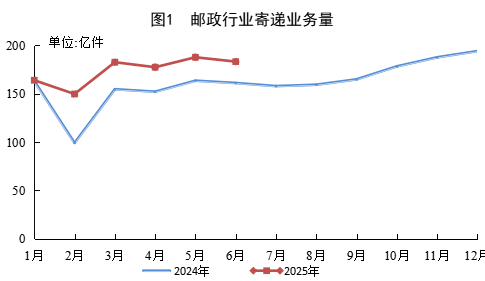6月份,邮政行业寄递业务量完成183.3亿件,同比增长13.7%。其中,快递业务量完成168.7亿件,同比增长15.8%。