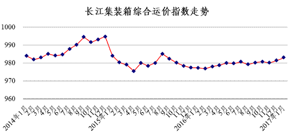 集装箱综合运价指数 | 977.34 | 981.46 | 983.08 | 0.17% | 0.59% |