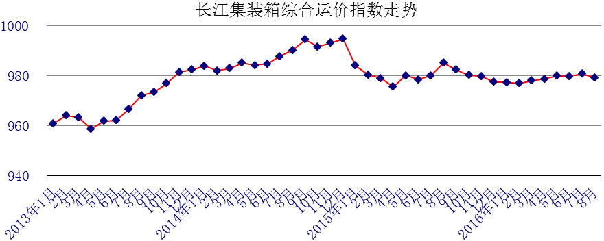 集装箱综合运价指数 | 985.12 | 980.73 | 979.24 | -0.15% | -0.60% |
