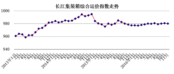 集装箱综合运价指数 | 978.42 | 980.76 | 980.14 | -0.06% | 0.18% |